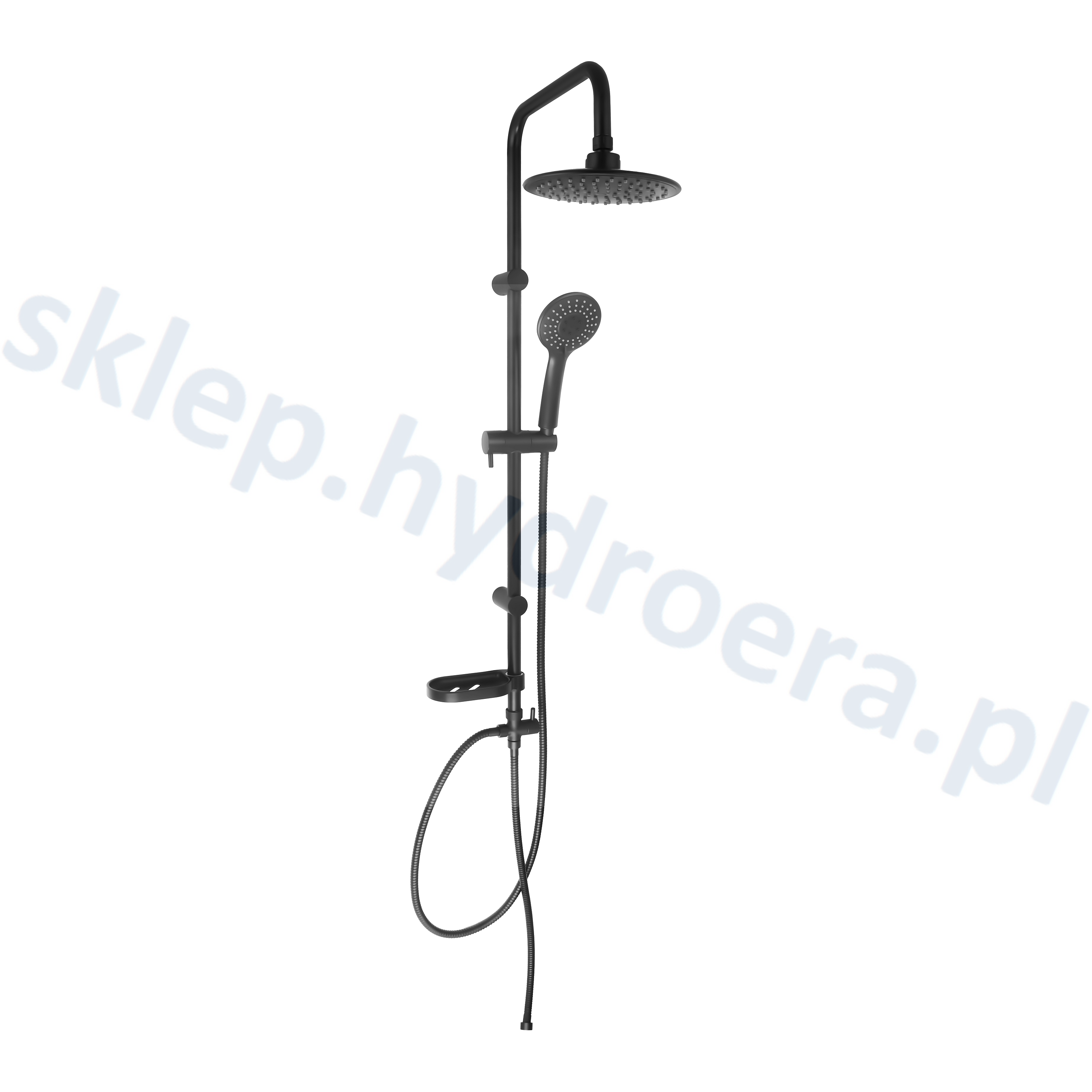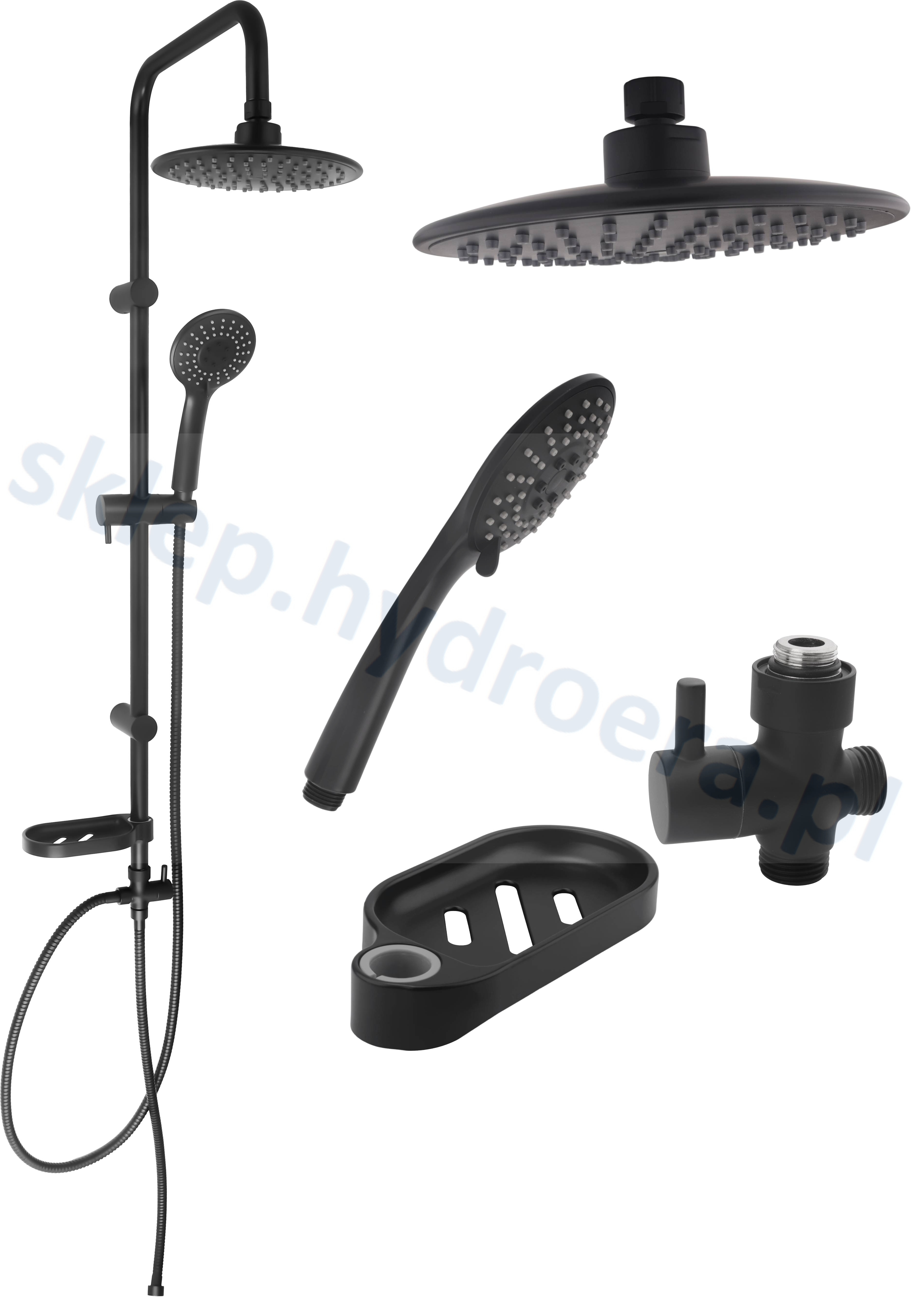 Zestaw prysznicowy z deszczownicą, słuchawką i mydelniczką w kolorze czarnym