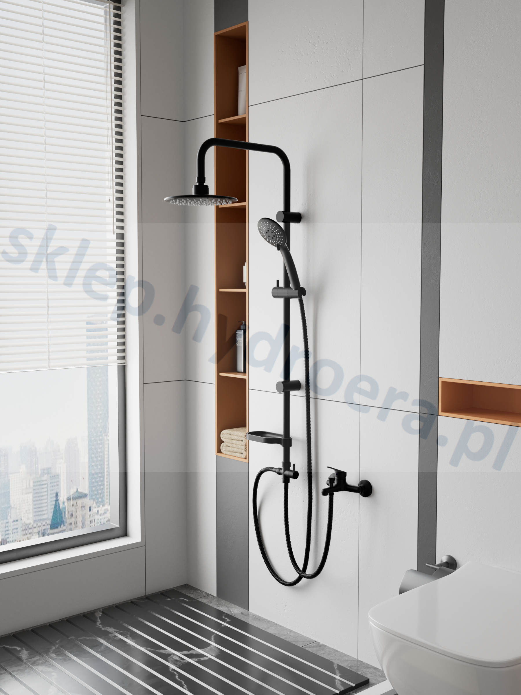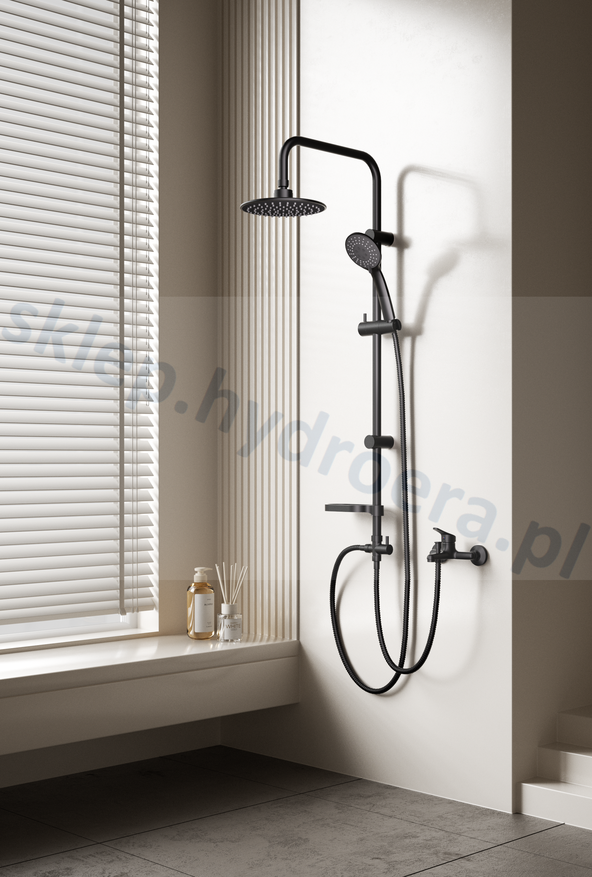 Zestaw prysznicowy nadtynkowy z deszczownicą okrągłą i mydelniczką czarny