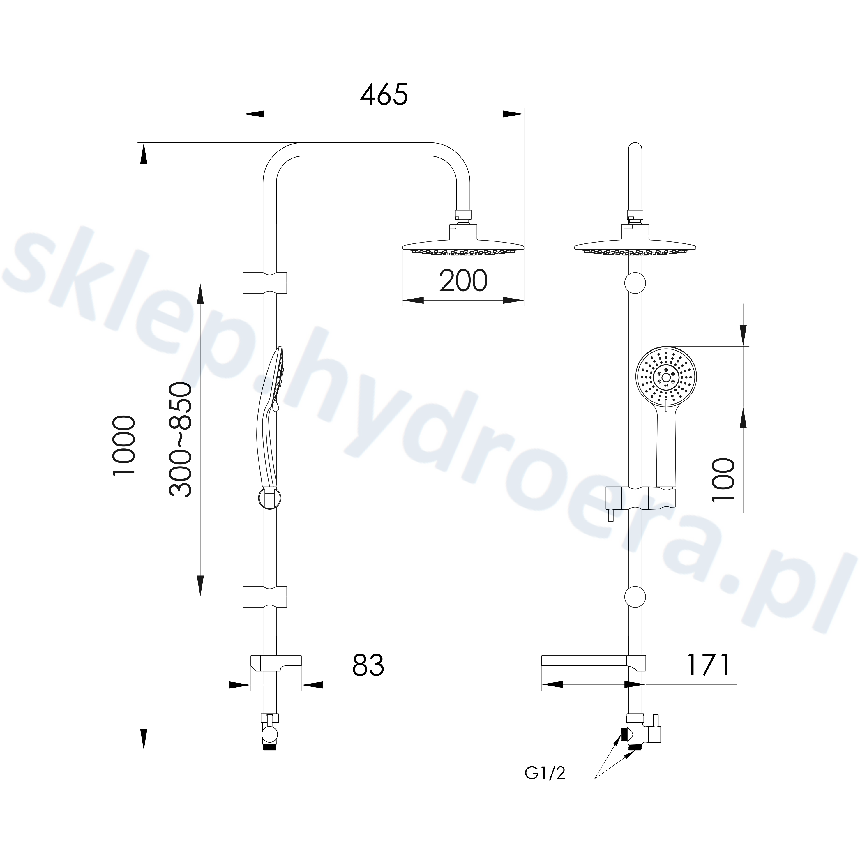 - regulowany uchwyt do słuchawki prysznicowej z regulacją góra-dół