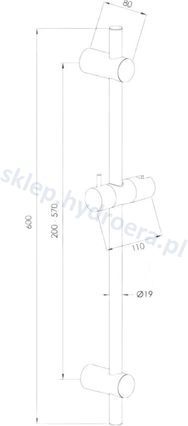 Drążek prysznicowy przesuwny L-600 z regulowanym rozstawem TYCNER 2816