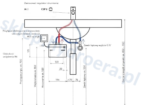 ✔️ Sterowany hydraulicznie przepływowy podgrzewacz wody (urządzenie podumywalkowe) w formacie mini do efektywnego zaopatrzenia w wodę jednej umywalki