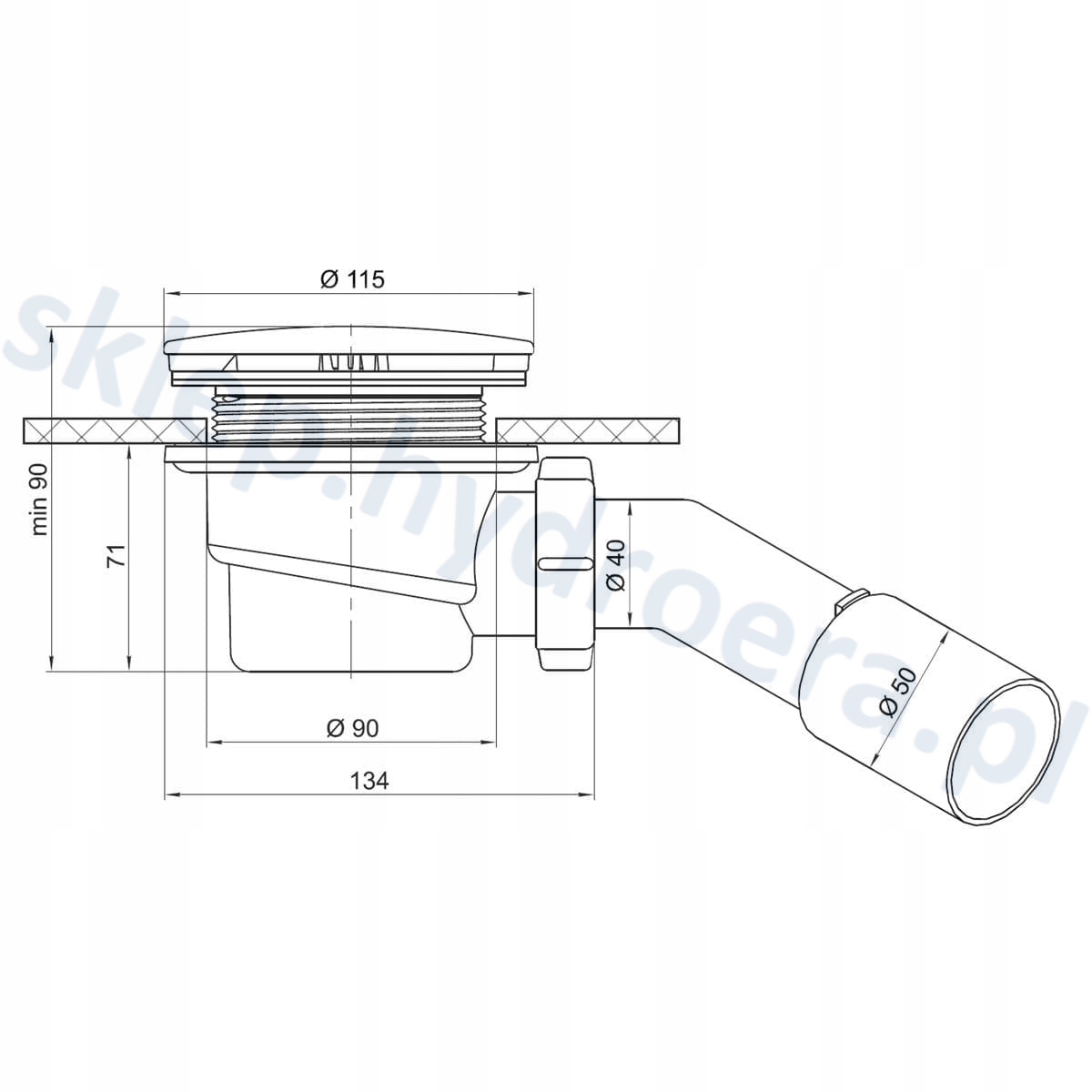 SYFON BRODZIKOWY DO BRODZIKA 90 MM CHROM CZYSZCZONY OD GÓRY