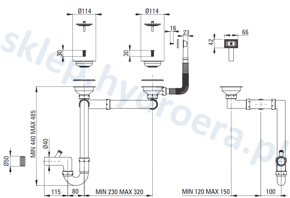 - Syfon przeznaczony do: zlewozmywaków stalowych wpuszczanych