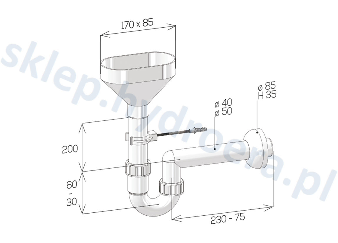 SYFON DO BOJLERA NA SKROPLINY 1"1/2 X50 mm LEJKOWY DO KANALIZACJI