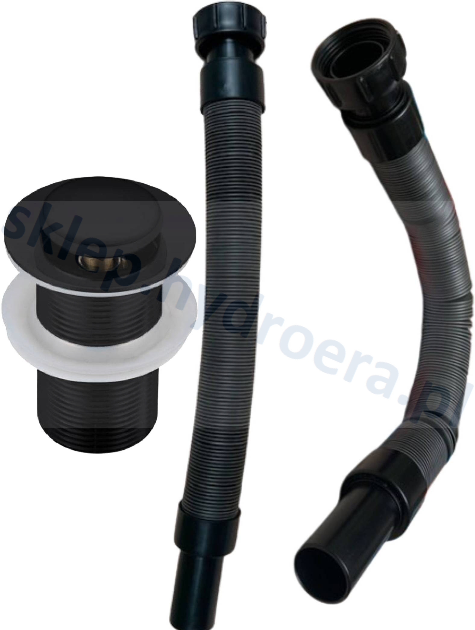SYFON DO UMYWALKI CZARNY ELASTYCZNY+KOREK KLIK KLAK DO UMYWALKI BEZ PRZELEWU CZARNY