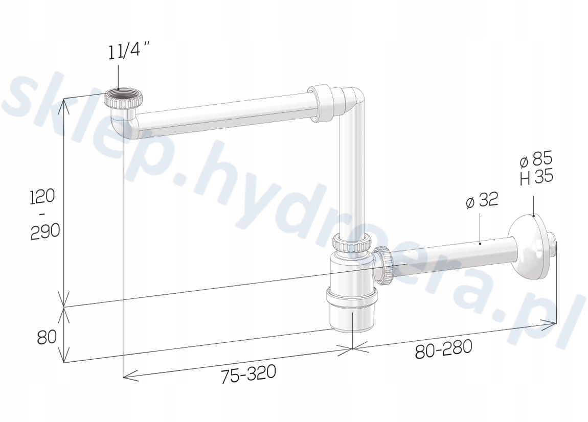 ✅ regulacja rury odpływowej w syfonie : w zakresie od 80 mm do 280 mm