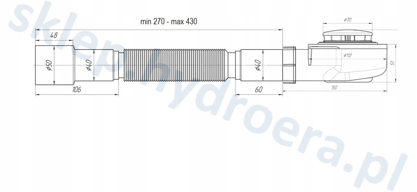 Syfon brodzikowy 50 mm niski z elastycznym uniwersalnym odpływem