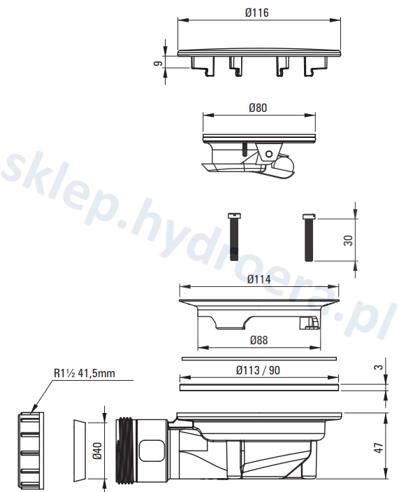 - Średnica odpływu: 90 mm