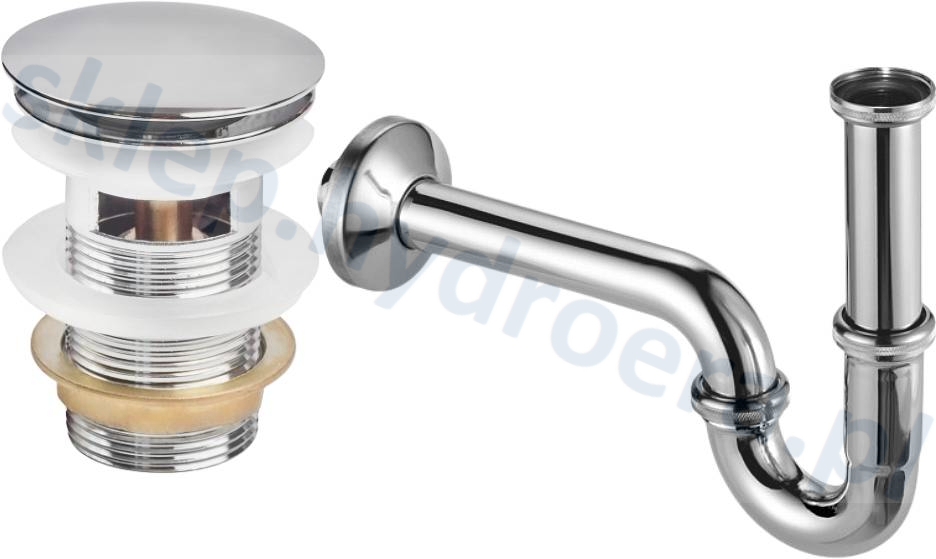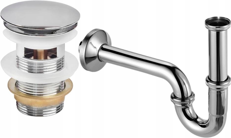 Syfon do umywalki chromowany rurkowy + korek klik klak chrom z przelewem