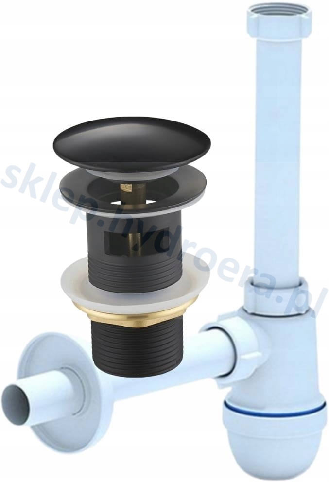 Syfon do umywalki + korek klik klak czarny z przelewem