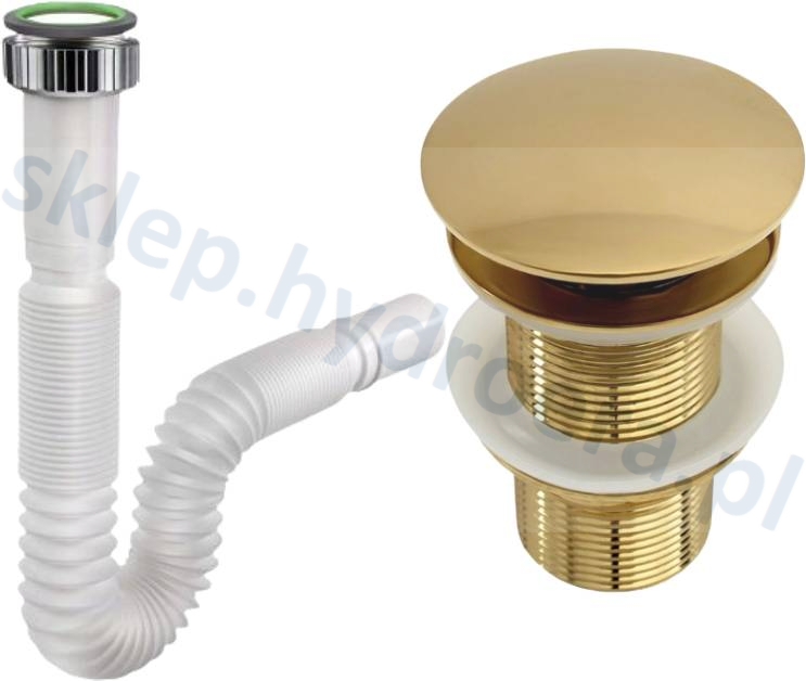 Syfon do umywalki regulowany elastyczny +korek klik klak bez przelewu ZŁOTY