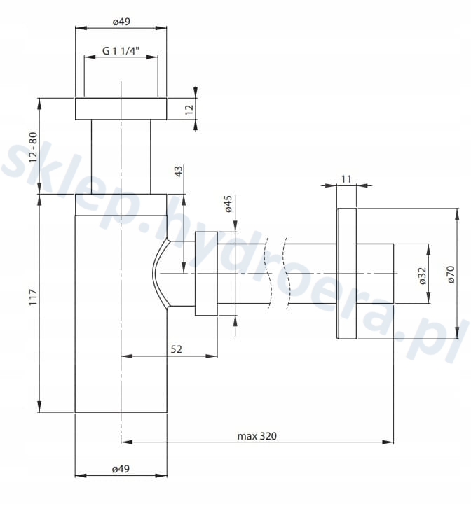 ✔️ Średnica odpływu: fi 32 mm