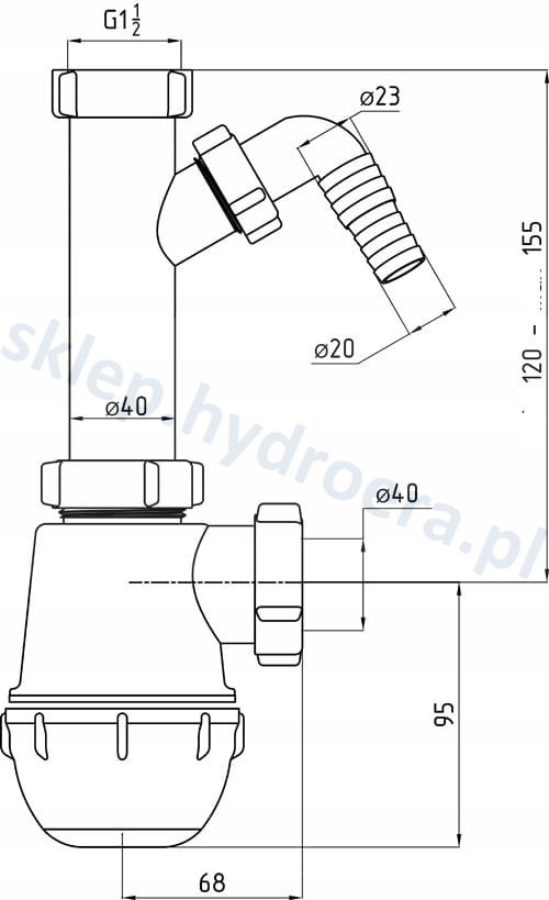 - Zastosowanie syfonu: do podłączenia zlewu z odpływem