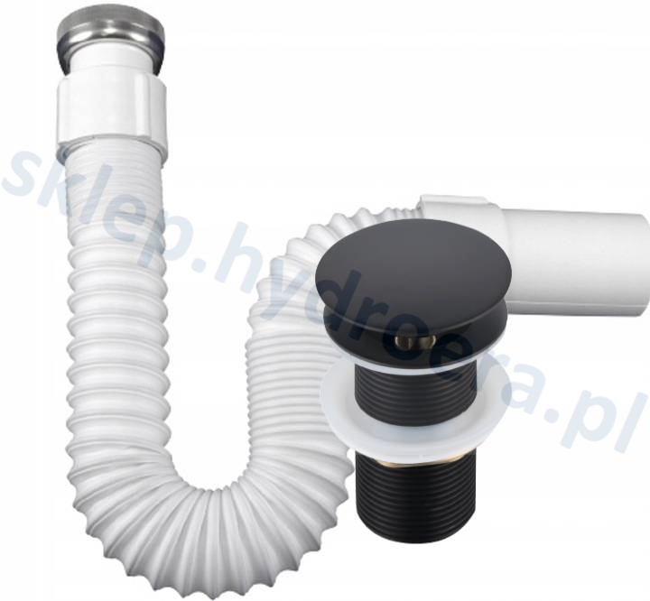 Syfon oszczędzający miejsce rozciągany wzmocniony + korek czarny mosiężny bez przelewu