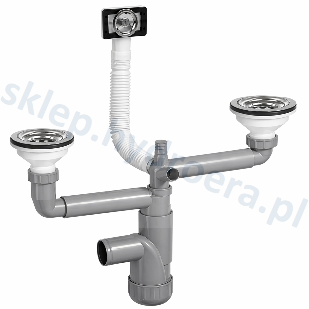 Syfon zlewozmywakowy Prevex 90 mm 2 komory przelew okrągły, prostokątny