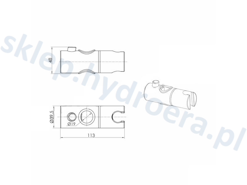 Uchwyt przesuwny do drążka prysznicowego 19 mm na słuchawkę